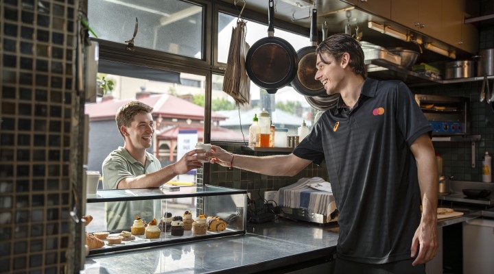 To celebrate the way small businesses bring the community together during the Open, Mastercard arranged for Aussie world number 10 player Alex de Minaur to make coffees and help out with other tasks at Pound Cafe in South Yarra before the tournament.